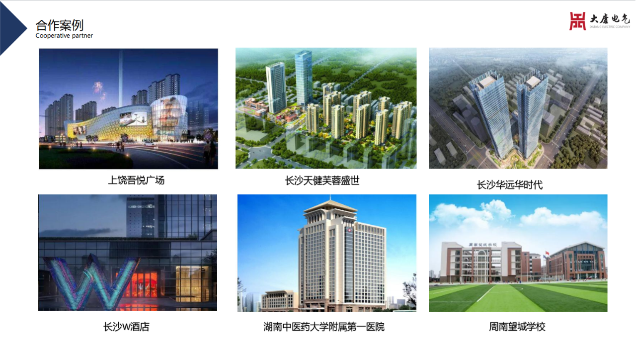在公司“誠信、務實、精進、共贏”的企業核心價值觀的引導下,我們已與恒大地產、金茂地產、龍湖地產、旭輝地產、佳兆業地產、榮盛地產、保利地產、華遠地產、萬達廣場、步步高商業等開展了長期的深度合作,并承接了國家、省政府等重點項目,如機場、軌道交通、醫院、大中院校等。優質的產品保障、完善的服務體系100%的消防驗收通過率使湖南大唐電氣贏得了全國客戶的贊譽。